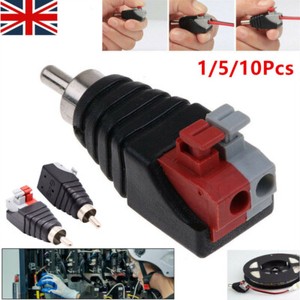 Speaker Wire A/V Cable to Audio Male RCA Connector Adapter Jack Press Plug UK.