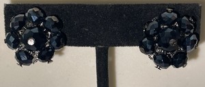 Vintage Silver Tone Black Beaded Clip On Earrings Jewelry GAR5-44