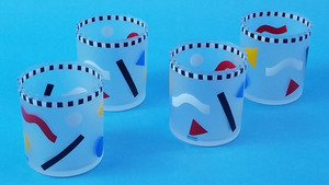 Set up of 4 1980 Prisma 12oz frosted glass Barware
