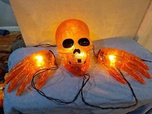 Celebrate! Halloween Light Up Skull With Hands Orange Indoor Outdoor Decor 3 pc