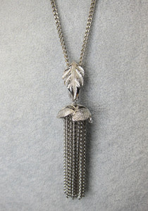 Beautiful vintage 26" silver-tone necklace leaf chain tassel pendant