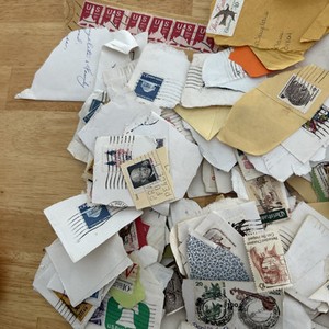 Old United States Postage Stamps With The Green Hinges And Lots Of Paper On