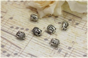 10pz volto di buddha perla color argento antico 1,1x0,8 cm