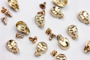25pz Borchie teschio con rivetto color oro *25pcs SKULL STUDS color gold