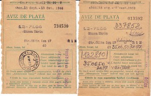 Romania, 1970's, Lot of 5 Vintage Electricity Bills / Receipts