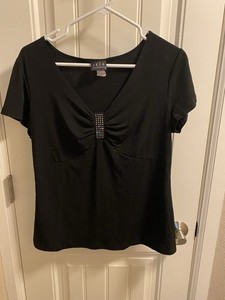 Rock Republic L Top Black Rayon Blouse Metal Bling Accents Large Shirt Lg