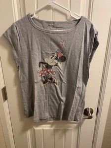 Disney Store L Top Gray Mickey Minnie Mouse Love Shirt Large Lg T-shirt