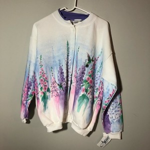 Vintage new artisans designs USA L button up sweatshirt hummingbirds floral 80s