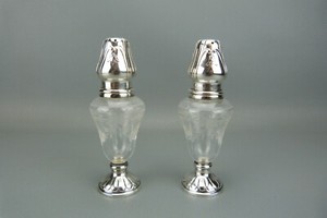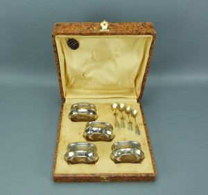 Coffret de 4 anciens salerons en métal, décor art déco, 19320-40 France.