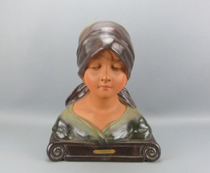 Ravissant buste de jeune fille en plâtre titré "LE VILLAGE3 N°232 début 1900's.