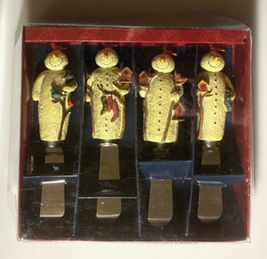 Vintage Mary Beth Baxter Twilight Snowman Set of 4 Diff Canape Spreaders - Mint!