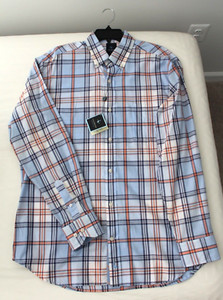 NWT TAILORBYRD Long Sleeve Flip Cuff Blue Orange Plaid Button Down Shirt Sz L