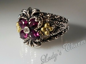 KH Designs African Amethyst Rhodolite Garnet Sterling Silver Ring Size 7.5