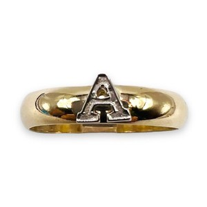 Initial A 10k Gold Capital Letter on Sterling Silver Plain Band Ring Size 12