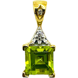 10k Yellow Gold Natural Peridot Diamond Pendant