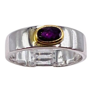 925 Sterling SIlver Genuine Natural Pink Ruby Gold Accent Band Ring Size 5.5