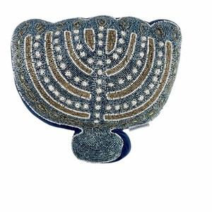 Storehouse Hanukkuh Beaded Menorah Decorative Throw Pillow w/Blue Velvet NWOT