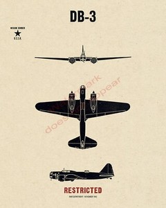 WWII USSR Russian Tupolev SB-2 Bomber Glider Tug Aircraft Recognition Poster V-1 RM 39.27 to RM 76.51
