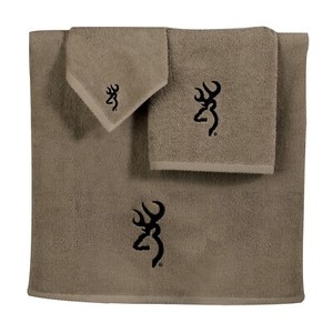 Browning Buckmark Towel Set Khaki 3pc 100% Terrycloth Licensed Deer Logo Country