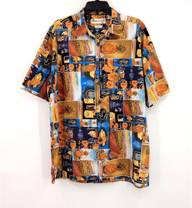TOMMY BAHAMA Shirt Mens L Multicolor Silk Floral Palm Tree Hawaiian Loop Collar