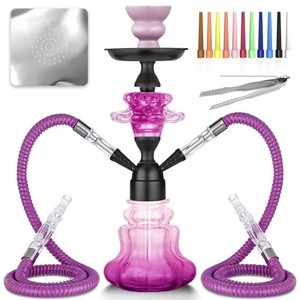 12'' Hookah Set 2 Hose Shisha Hookah Set With Everything - Modern Glass Vase,...