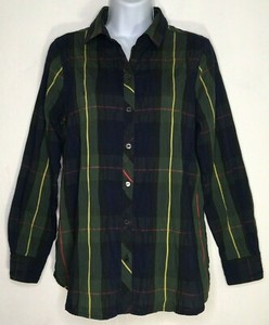 Foxcroft NYC Womens 10P Crinkle Stretch Shirt Top Button Front Green Blue Plaid
