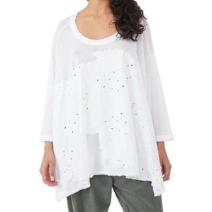 Kedem Sasson Women’s Size S/M White Crushed Cotton Shirt Top Tunic Lagenlook