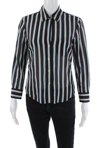 ALC Womens Button Front Long Sleeve Collared Striped Shirt White Black Size 4
