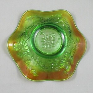 NORTHWOOD POPPY VARIANT GREEN CARNIVAL GLASS BOWL