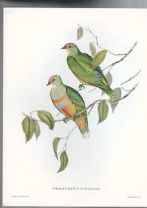 JOHN GOULD TROPICAL BIRDS , PRINT by ARIEL PRESS , 1955 , PTILINOPUS EWINGII