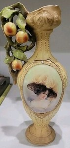 Antique 1890s Robert Hanke Hand Painted Porcelain Vase RH Austria 13" Lady Fruit