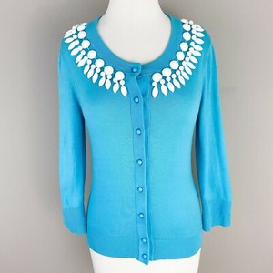 Lands' End Blue White Stripe Button Up Nautical Soft Eyelet Preppy Cardigan Med