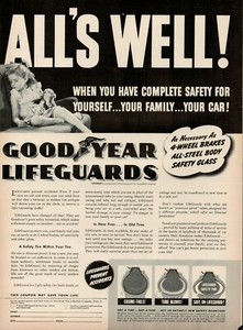 1939 Goodyear Tires Lifeguards Family Complete Safety All Safe Vintage Print Ad