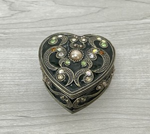 Enamel and Brass Heart Shape Trinket Box with Jewel Accents J-094