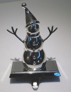 Silver tone Snowman Stocking holder hook Large and Heavy 8.5" tall