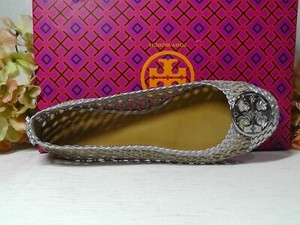 Tory Burch CHELSEA Light Taupe/Silver Woven Leather Ballet Flats Size 7.5**NIB**
