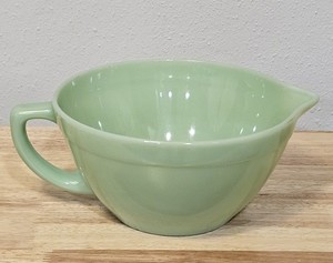 VINTAGE FIRE KING JADEITE BATTER MIXING BOWL POUR SPOUT HANDLE 7.5” DIA