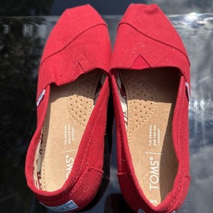 TOMS Women's Classic Red Canvas Slip-On Comfort Shoes Casual Loafers Flats 8 W