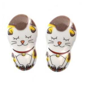 Tubbies Chopstick Rests, Kutani Ware, Cute Calico Cat Design, Set Of 2, Cat Pai_