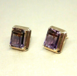 HANDCRAFTED AMETHYST EARRINGS 14 YELLOW GOLD 11x13MM 4.6G RECTANGLE WOMEN'S