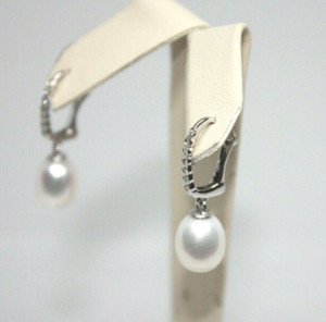 NEW 0.15CTW DIAMOND PEARL EARRINGS 14K WHITE GOLD 3.5GR LADIES PUSH BACK
