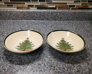 Set of 2 Cuthbertson Original Christmas Tree Cereal Bowls 6 3/8" wide green band