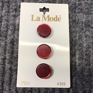 Vintage La Mode 3 Sewing Buttons Red Round 1/2” Shank NOS Japan