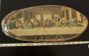 Vintage Last Supper Wood Slice Decoupage Wall Plaque with Bark Edge Wood Slice