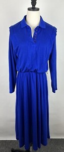 Vintage Cobalt Shirt Dress M 80s 90s Secretary Royal Blue Soft Acrylic Knit Mom