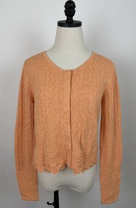 Crochet Cardigan Sweater Womens Large Victor Glemaud Cotton Knit Pastel Orange