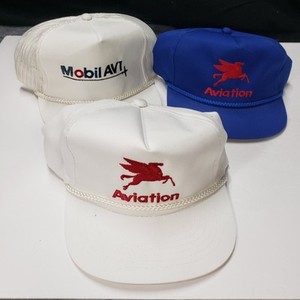 3- Vintage Mobil Aviation Trucker Hats Cap Made in USA