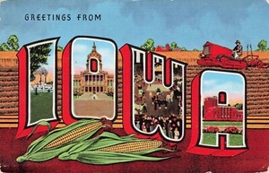Large Letter Greetings from Iowa Vintage PC Posted 1944