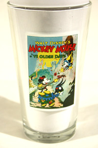 Disney Glass Mickey Mouse Ye Olden Days Collectible Pint 6"
