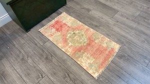 This is the cutest little rug and in great condition! The seller had an error in the title as to the color of the rug, but immediately and graciously answered my question about it. The item was immediately shipped and was very well packaged. I thought it was a bargain and am delighted with it. I needed a very particular size and color and it suited my needs perfectly. I would definitely buy from this seller again!